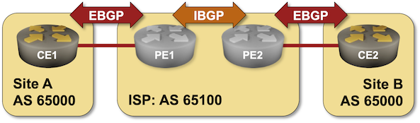 Using the default netlab IBGP session establishment rules, you’d get an IBGP session between the loopback interfaces of CE1 and CE2, resulting in “interesting” BGP tables and (potentially) recursive routing.